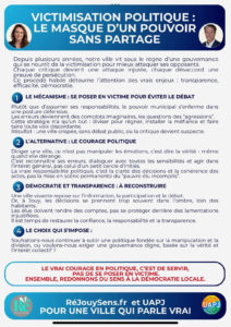 Elle se considère victime d’une opposition et d’une gestion administrative difficile. Cependant, critiquer les dépenses publiques inutiles et défendre le contrôle démocratique fait partie du rôle d’élu. Je suis fier de représenter une opposition engagée, en contraste avec ceux qui cherchent uniquement une image. Être élu, n’est pas un métier mais un engagement pour le bien-être des citoyens.